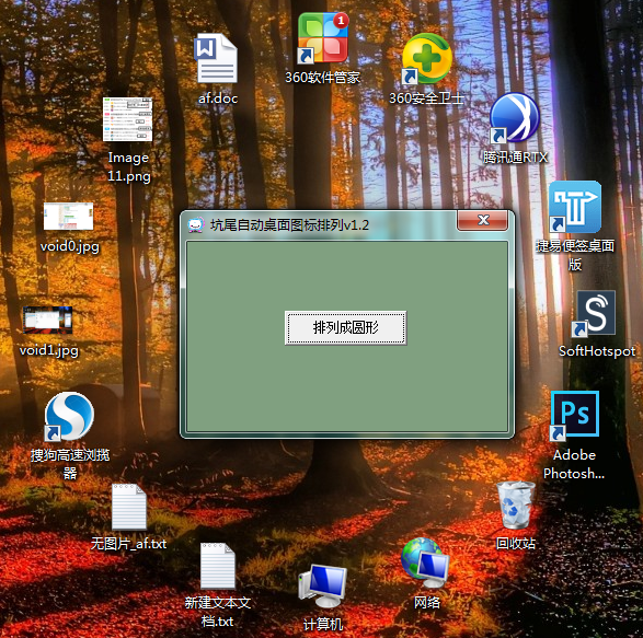 很多用户都需要定制属于自己的个性,桌面图标排列也需要不走寻常路。小编给大家推荐一款坑尾自动桌面图标排列,该软件能自动将你的桌面图标排列成一个圆,完完整整,简洁美观,新增图标后,也可继续一键成整圆。欢迎下载!