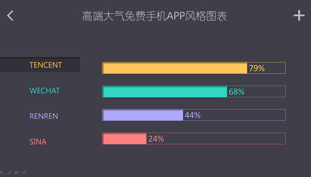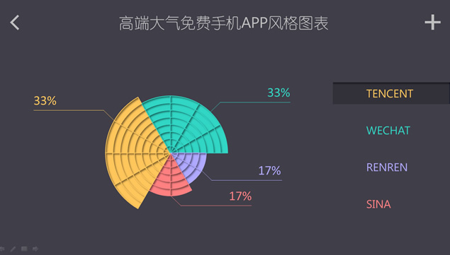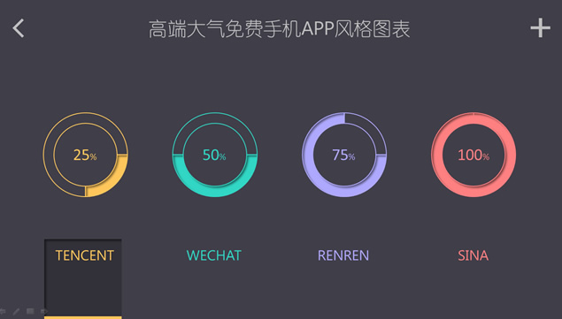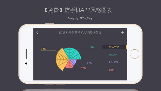 这里是一份仿手机APP风格图表ppt,幻灯片以灰色为背景,非常简洁,看起来高端大气,个性十足,有需要的点击下面的地址即可免费下载这份APP风格ppt图表素材。