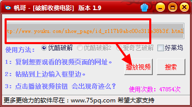 2、进入软件主页后,复制需要播放的付费电影地址,点击【播放视频】