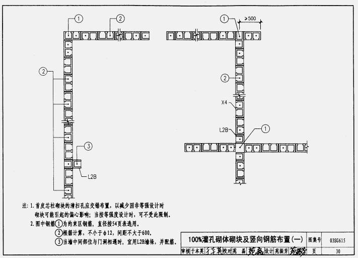 100%灌孔砌体砌块及竖向钢筋布置(一)~(二)30