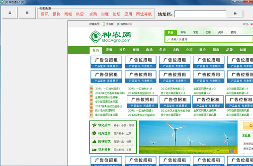 神农通,前期主要以农业资讯、供求信息、求购信息、市场信息、招商信息五大专栏模块组成,为农民免费提供专业、即时、有效的农业信息查询和指导,现在已经完成Android和Iphone版本的开发,软件使用方便、快捷、易操作、内存占用小等特点。