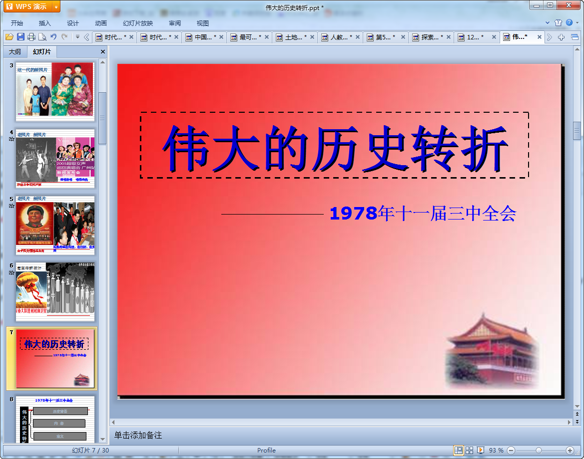 这是由东坡下载编辑整理的人教版历史教学课件伟大的历史转折ppt,该课件共有30页内容丰富,对课文中的知识点归纳的十分清楚,非常优秀的一篇教学课件,有需要的老师们可以来这边看看,我们为大家提供免费的下载!