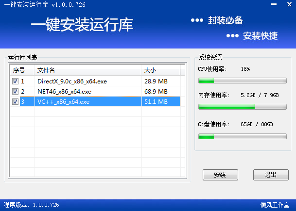 2、如果不想安装哪个运行库,只需删除RuntimePackage目录下对应文件