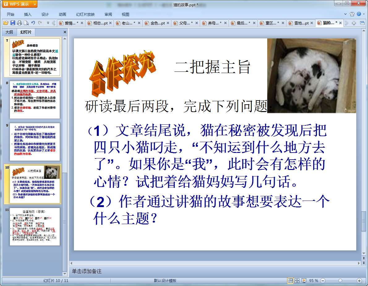 3、感悟猫身上折射出来的伟大的母爱和可贵的精神品质。