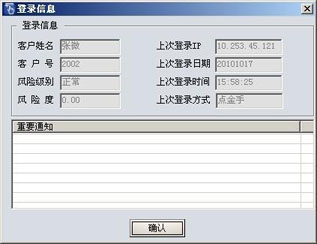 客户登录信息提示框中,包括了三个部分的内容:客户信息,上次登录信息和期货公司重要通知;