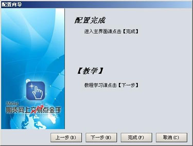 投资者可选择“完成”进入下一个步骤,或者选择“取消”放弃之前的配置内容,进入下一个步骤,或者选择“上一步”回到上一个配置步骤,或者“下一步”进行教程学习。