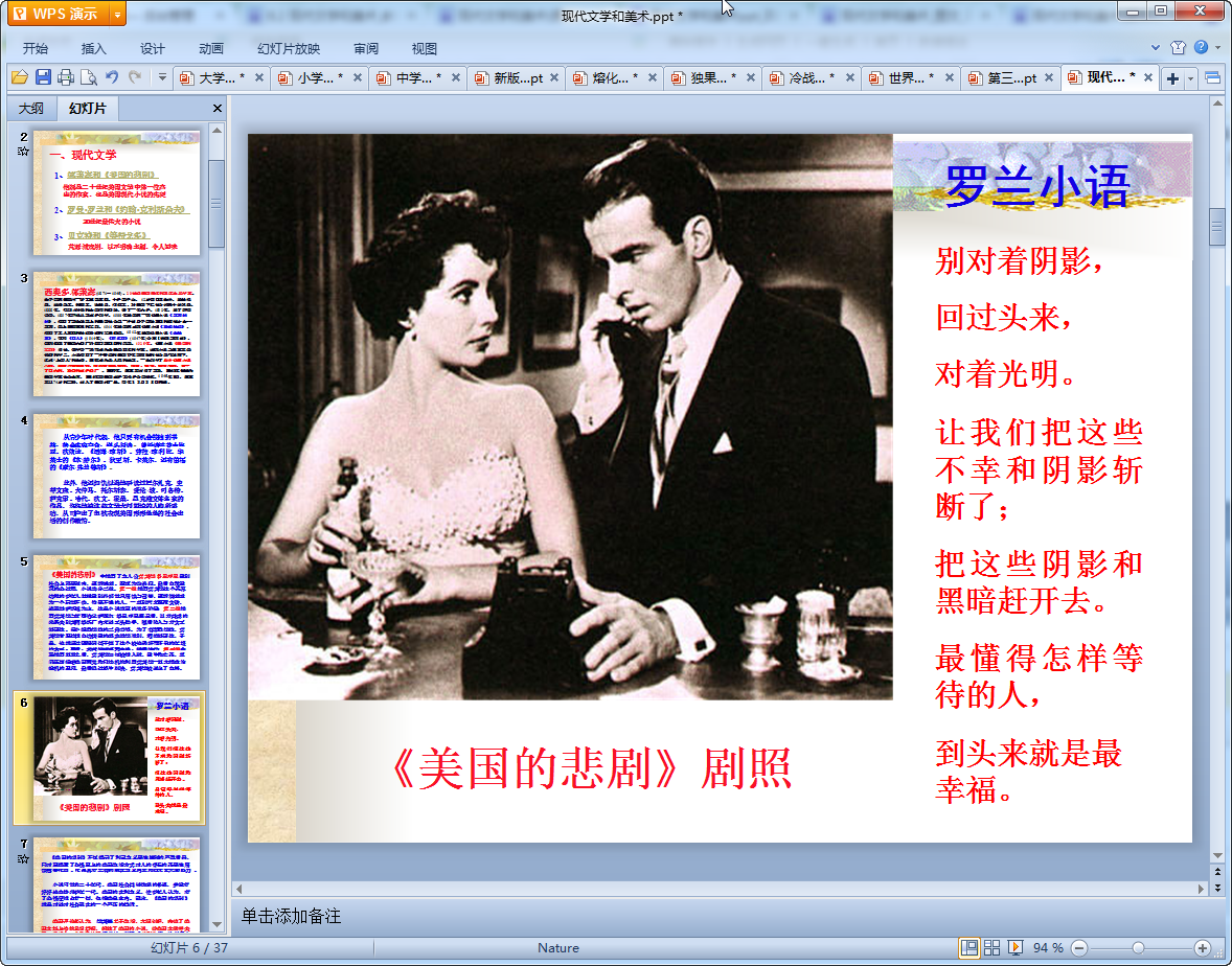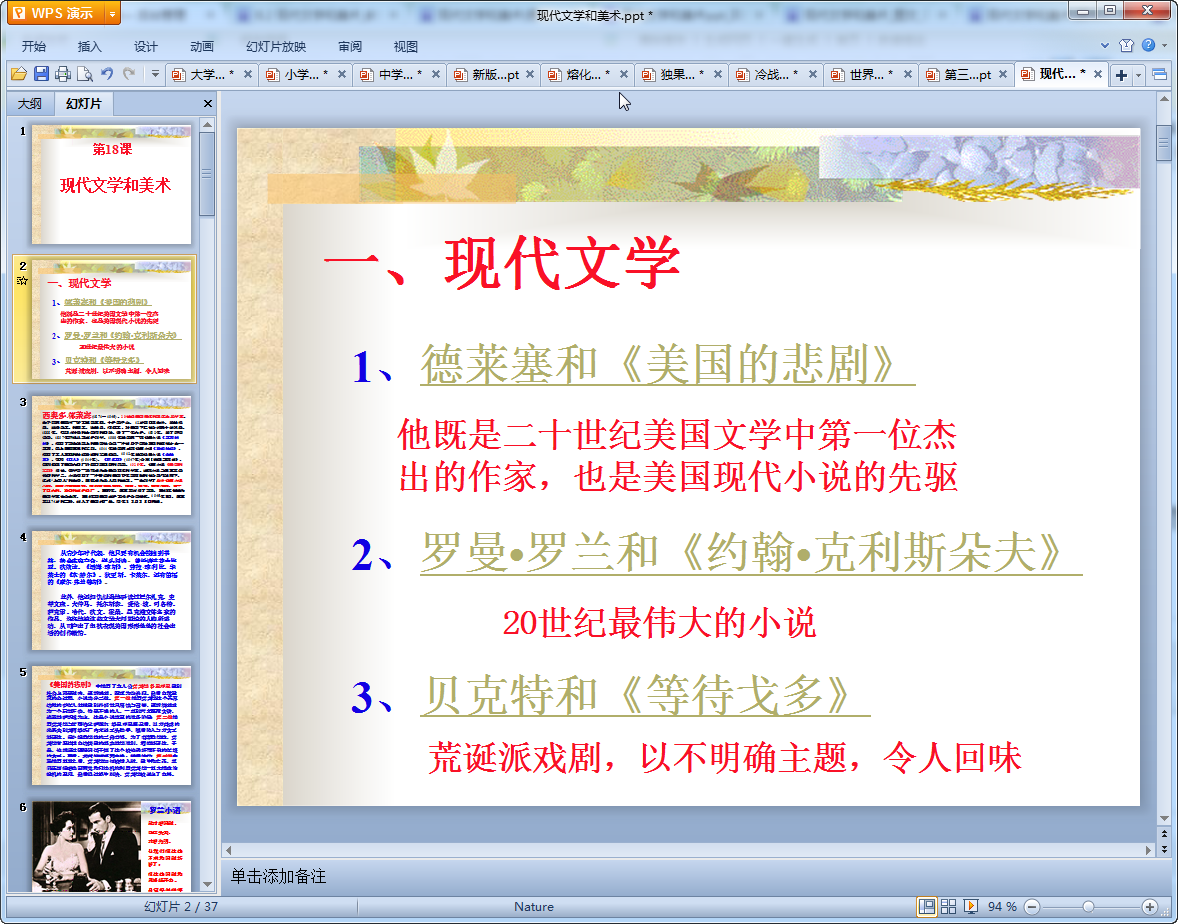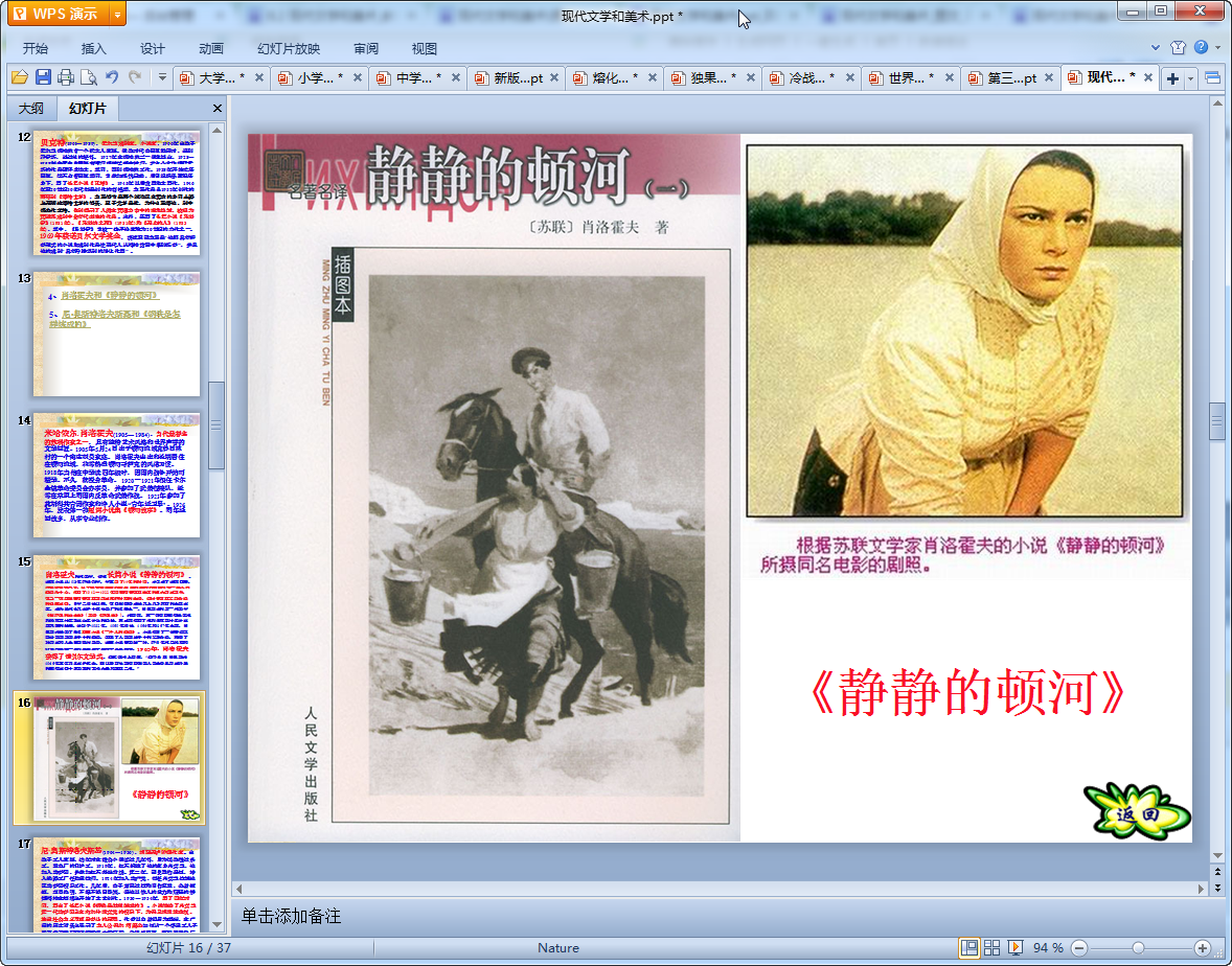 这是由东坡下载编辑整理的现代文学和美术教学课件,该课件的内容十分丰富制作却十分简洁,全篇共有37页有需要制作该课件老师们可以这里看看,内容不会让您失望!