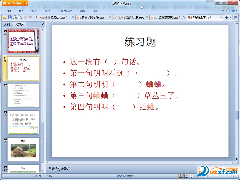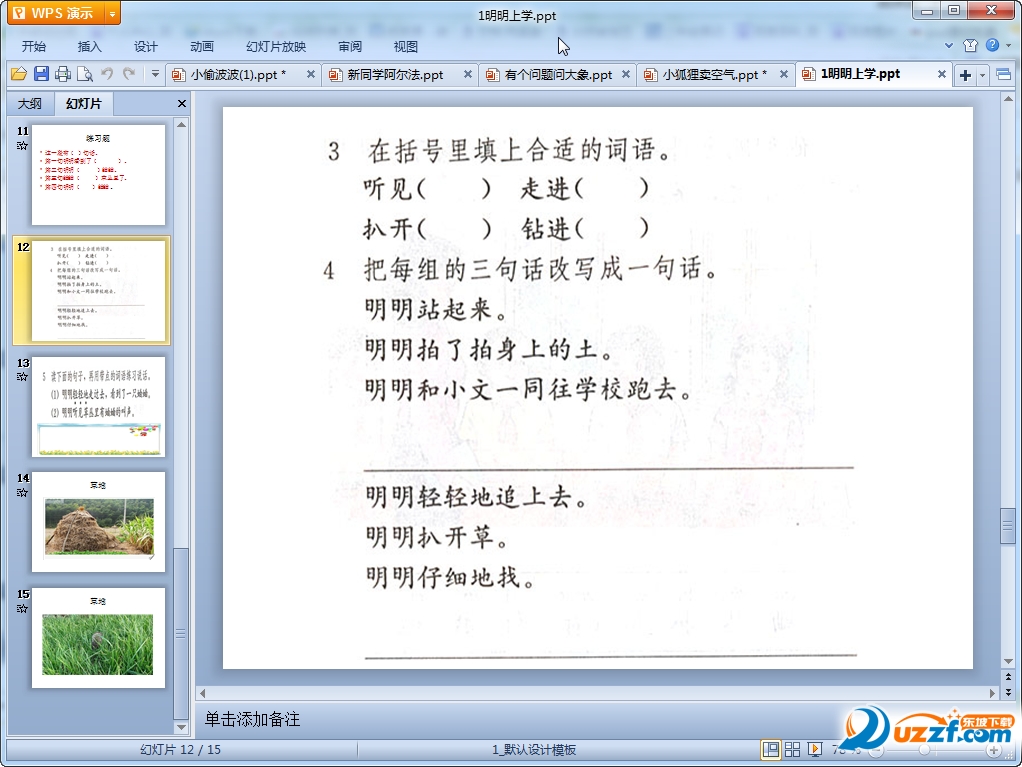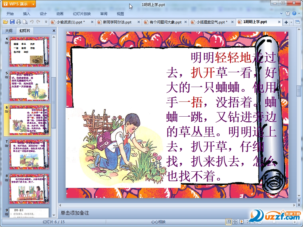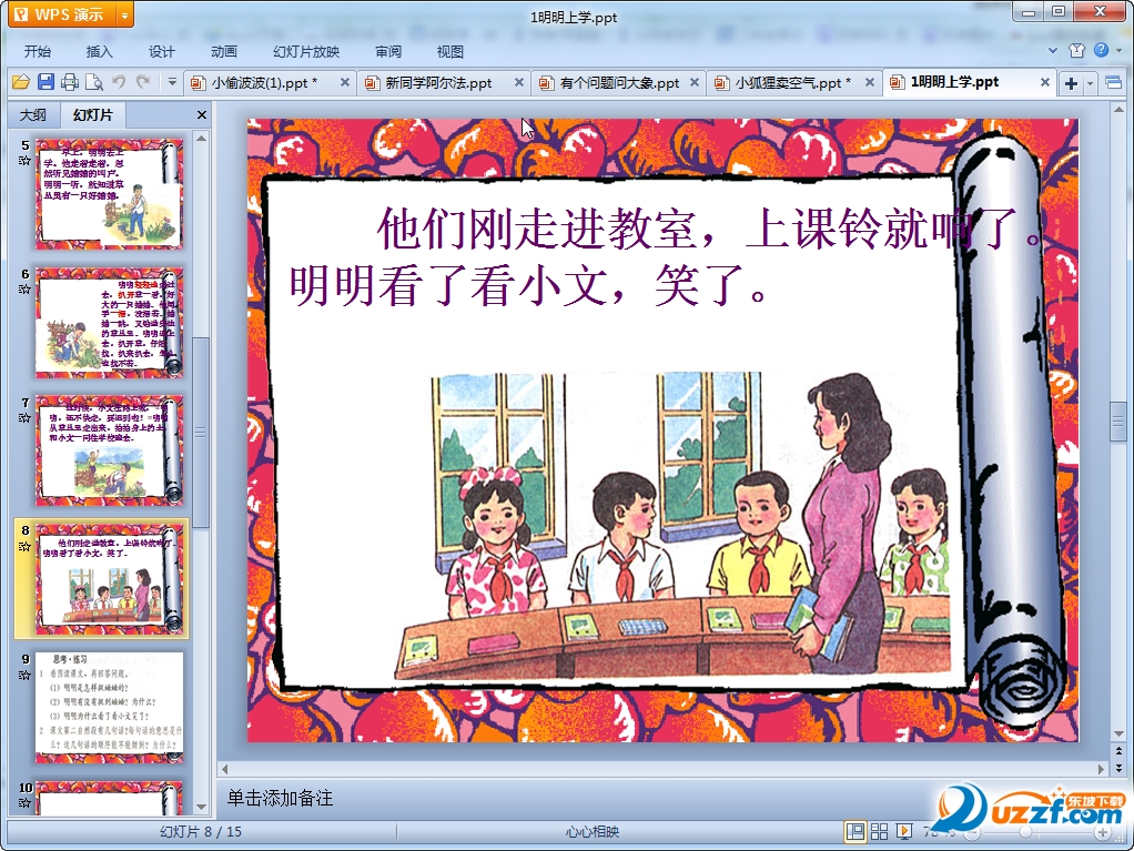 这是一篇小学一年级下册语文明明上学ppt课件,课件共有12也内容制作比较完整,喜欢使用ppt教学的老师们可以来看看我们的这篇明明上学ppt!