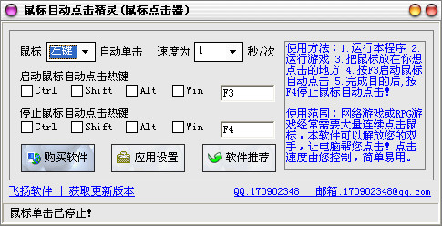 网络游戏或RPG游戏经常需要大量连续点击鼠标,本软件可以解放你的双手,让电脑帮您点击!点击速度由您控制,简单易用,