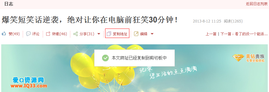 2、打开所要刷的日志,点击其标题下方的“复制地址”;