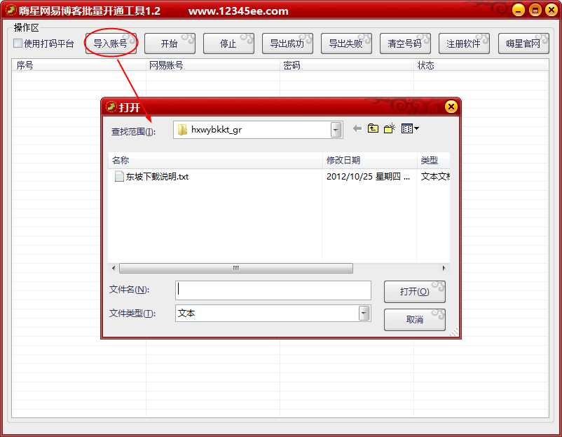 1、软件支持批量导入多个网易账号开通网易博客,无需一个个手动开通。