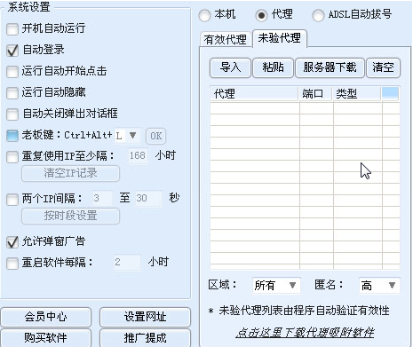 3.未验代理可导入海量代理,由程序后台自动验证并添加到有效代理,减少人工操作