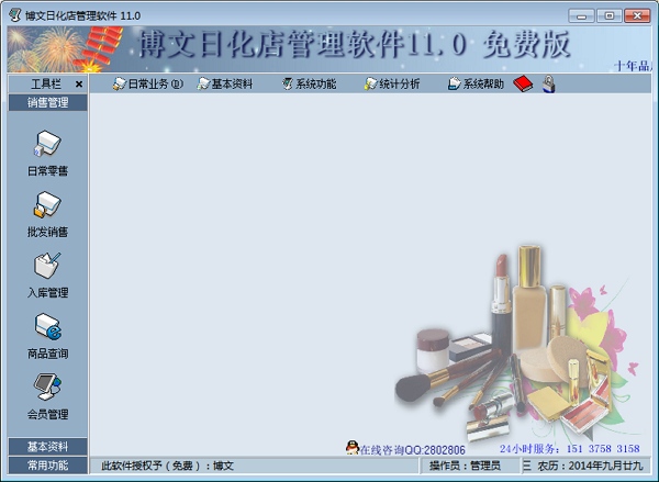 博文日化店管理软件是一款免费好用的日化店进销存管理软件。软件功能强大,适用于品牌化妆品、日用品折扣店。商品管理方面除了一般软件的进销存功能外,重要特色是软件可配合会员管理,会员农历生日提醒、定时手机短信发送等开展业务,换季可通知会员进店试用新品,积累会员提高销量。会员积分、会员充值、会员消费积分送礼品送服务,会员按次卡、按月保养、美容、护肤等功能。