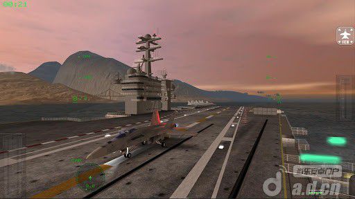 第四关:航母起飞,顺着地图指引,高度不要超过1000ft都没事,你看到那个高度和雷达图标变成红色那就马上降低高度,否则任务失败,这关可能是收集情报的那种,飞到第一个任务地点了,不要降落,速度在230km左右,低空盘旋,等到屏幕上的图标进度条满了,新任务出来了,在加速离开,不过也不要开太快。之后跟着指引飞一段就是降落的机场了。怎么降落就不多说了,和第二关一样,停在机库前的空地上。
