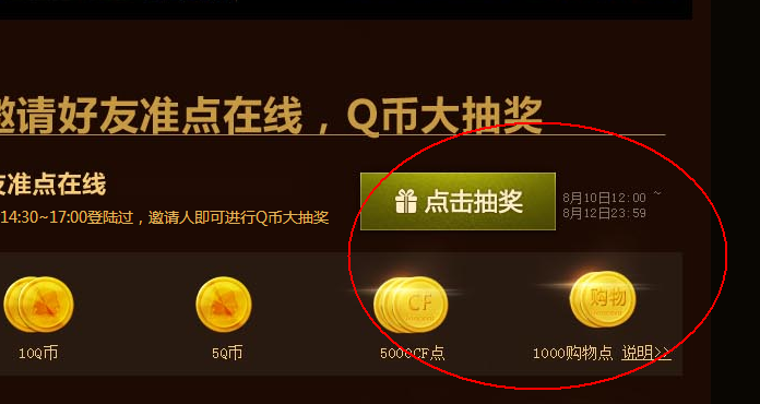 cf8月9日惊天大礼不知道大家都领到了没有呢?看到不少cfer表示今天下午登了很久才进入活动页面,小编真心替大家捏了一把汗,因为今天真心是人多啊!下面小编要为大家介绍的是在明天也就是8月10日将进行的抽奖活动,希望大家可以详细了解一下,以免太过慌乱,误了获得cf9件套或者是黄金清刚或者是龙鳞的机会哟!