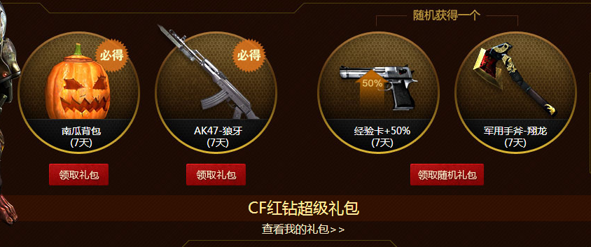 在本活动页面开通1个月红钻即可领取CF超级礼包一份,单Q限参加一次。请在2014年10月30日前兑换所获得的CDKey
