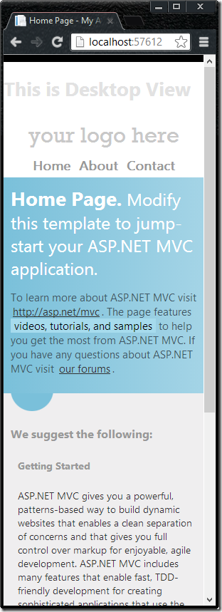 Html5 MVC4 Razor Responsive Web Template 工程模版不同于Html5Client模版,这个模版加入了.Net的后端示例代码,可以快速搭起一个Asp.Net MVC4的响应式Website,其实这个模版是在原有的 MVC4 Razor工程模版基础之上,加入了Html5的响应式设计。