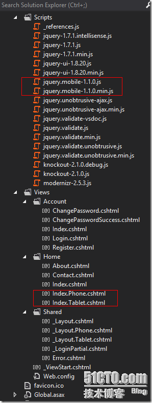 这个模版内置了jQuery mobile 库,同时为页面设计了Phone的View 和 Tablet 的View.