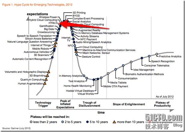 Html5现在发展的怎么样了?好像大家都在讨论Html5,Html5究竟怎么样,它的技术成熟了吗? 看下Html5 的Hype Cycle:
