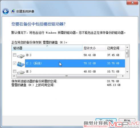 4.选择需要创建镜像文件的分区,默认选中了C盘系统分区。