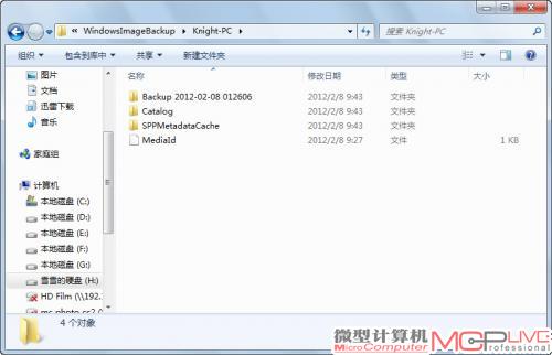 6 .创建的镜像文件实际上是以文件和文件夹的形式存储在移动硬盘的“WindowsImageBackup”目录下的。