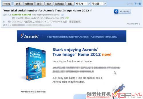 18.首先登录www.acronis.com,下载最新的Acronis True Image Home 2012,并输入邮箱地址,获取30天的免费试用序列号。
