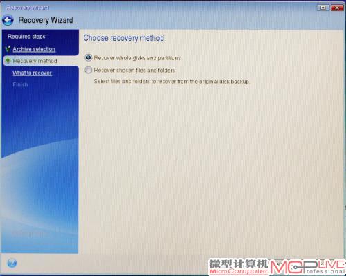 33.选择“Recover whole disks and partitions”,即恢复硬盘分区。另一个选择项目是恢复文件和文件夹。