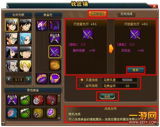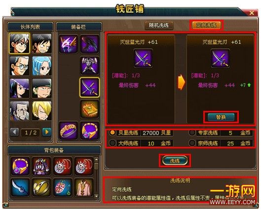 (2)定向洗练:不改变当前装备属性的类型只改变属性的数值。
