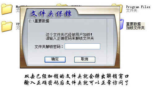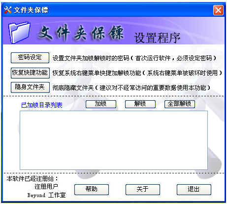 解锁:解锁一个已经加锁的文件夹,该文件夹在已加锁文件夹列表中选择。