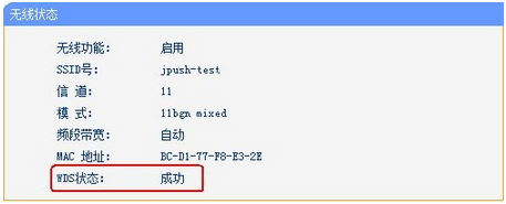 4.经过以上设置后,WDS设置基本完成,点击从路由无线状态,查看WDS状态是否开启成功。