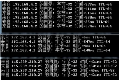 5.开启成功后,主路由WAN口接入宽带,从路由只要开启电源,不用接入网线。再进行测试网络是否连接成功,顺便也可检查网络覆盖范围是否有所增强。以下是主从路由LAN口IP及外网IP测试。