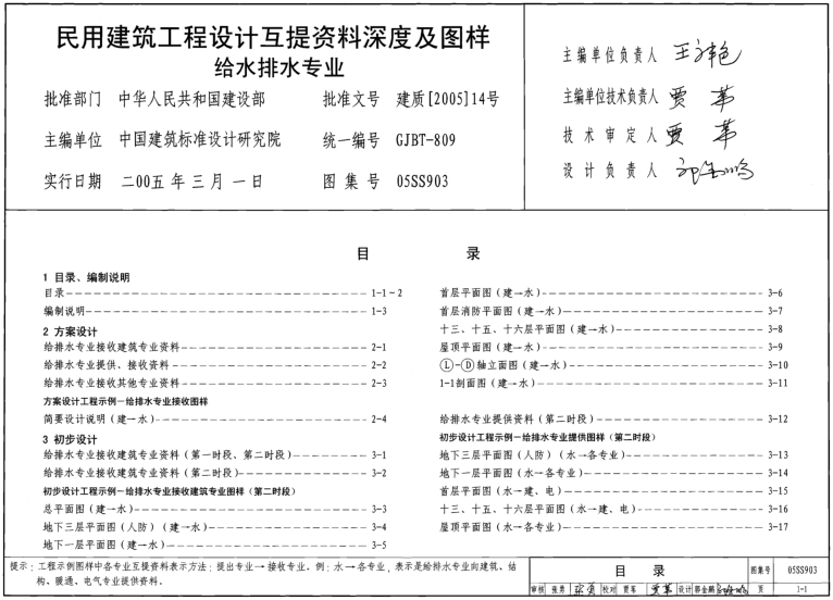这是一份给水排水专业图集——05SS903民用建筑工程设计互提资料深度及图样(以下简称为05ss903图集)。该05ss903图集为pdf格式电子版,图集内容完整,共有74页,字迹清晰,无水印,如果你需要一份05ss903图集免费下载资料,那么该图集无疑是你的不二之选,有需要的朋友快来下载吧!