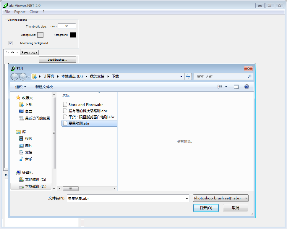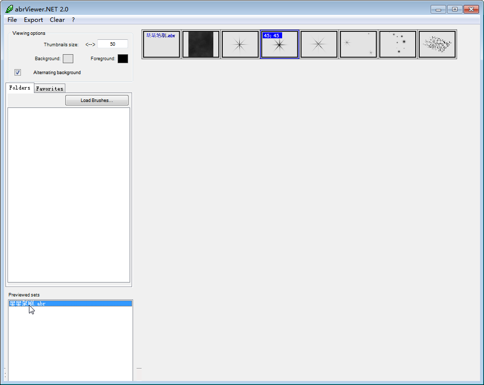 第一步,打开笔刷查看器(abrViewer),然后载入你所需要打开的abr文件,如下图所示: