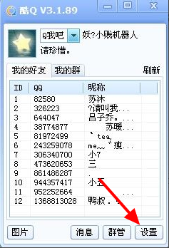 2、然后会出现一个和QQ差不多的面板,里边有您登陆的好友、群,点击【设置】按钮