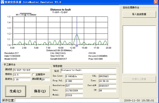 使用批处理功能必须先生成一个驻波并保存到一个WORD文档内,删除刚生成的波形图(不关闭WORD),切换到仿真软件,点“导入驻波数据”