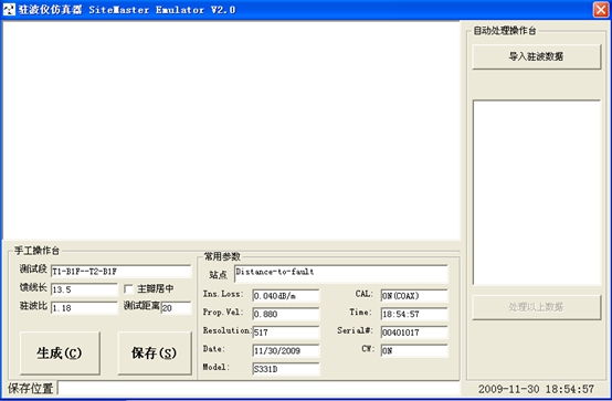 2. 关闭保存驻波图的WORD文档后要同时删除程序窗口底部的保存位置内的路径,否则点保存或者批处理时程序会报告服务器出错或者不存在。