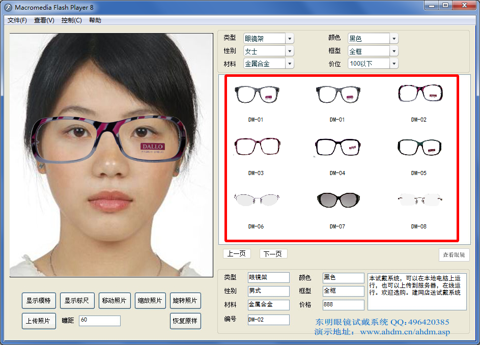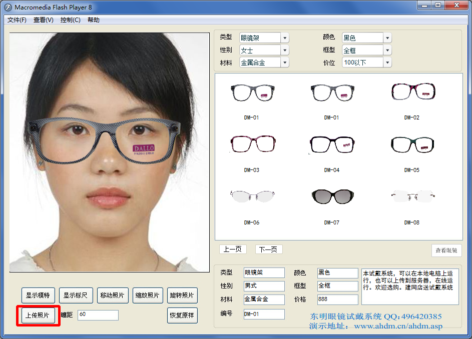 眼镜试戴系统是专为眼镜店打造的一款眼镜试戴软件,可以模拟眼镜的试戴效果图,顾客可以自由的挑选眼镜查看效果,增加眼镜的人气,提高销售额。