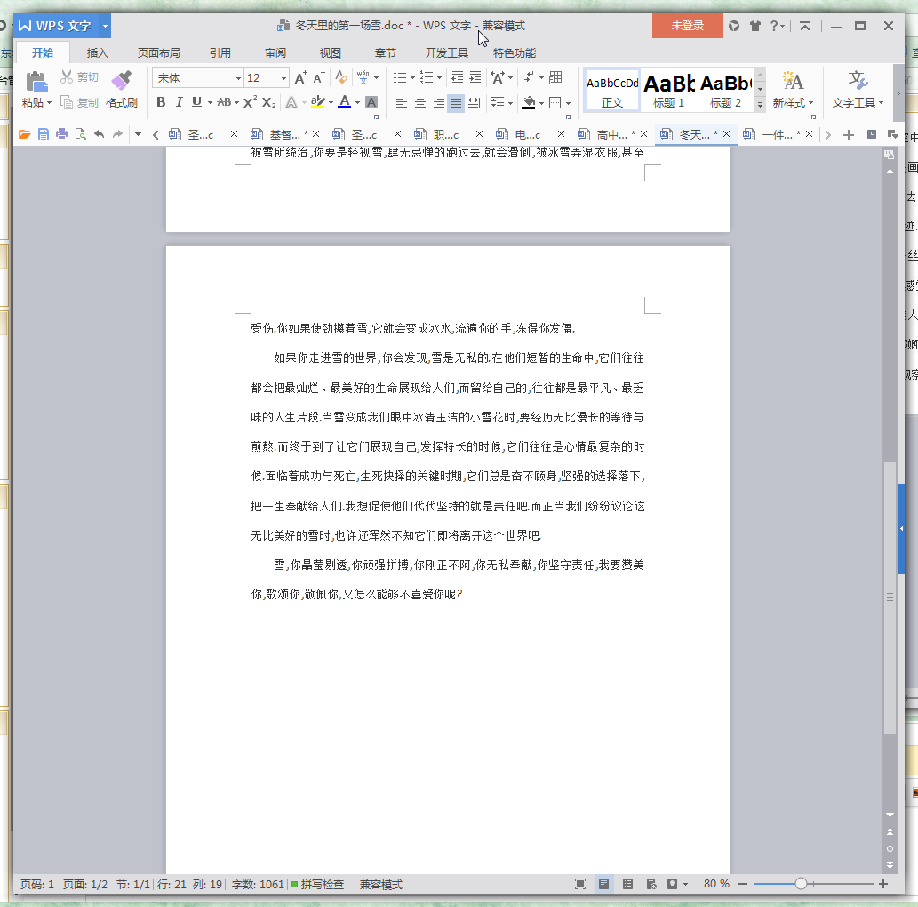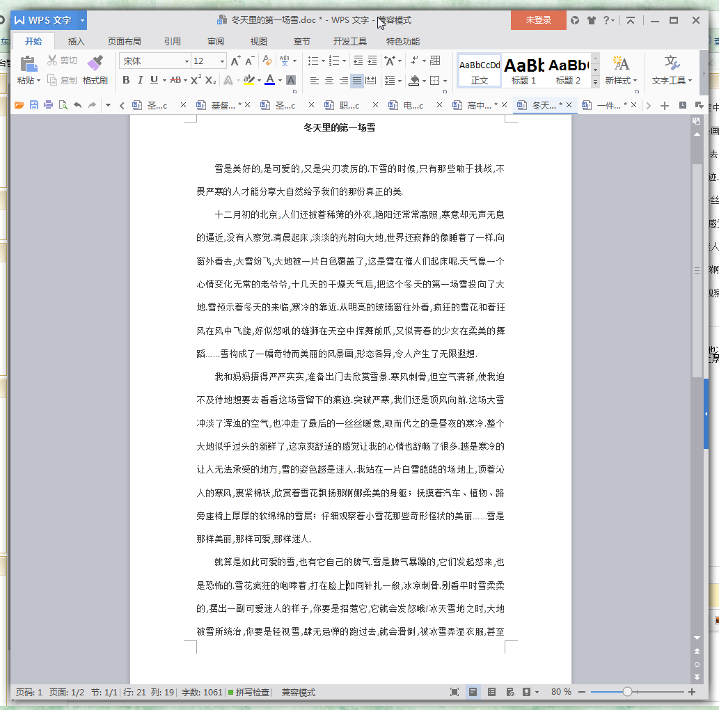 下雪了同学们都很高兴,老师布置的以冬天里的第一场雪为题写一篇作文不会写怎么办?这里的这篇冬天里的第一场雪作文范文刚好可以帮大家解燃眉之急,该范文内容十分精美,同学们可以随便的借鉴里面得的部分内容就可以写一篇属于自己的优秀作文!有兴趣的快来下载使用吧!