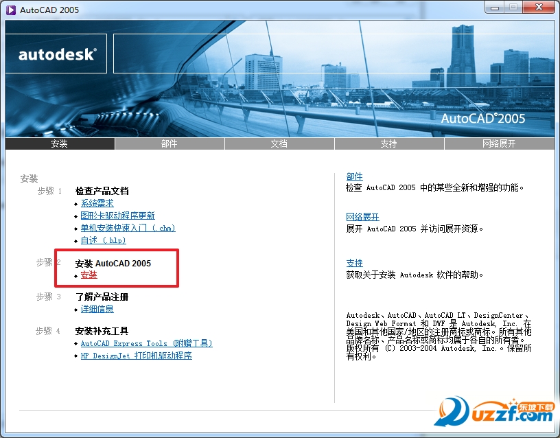 然后点击步骤2上的红色“安装”按钮,安装AutoCAD2005