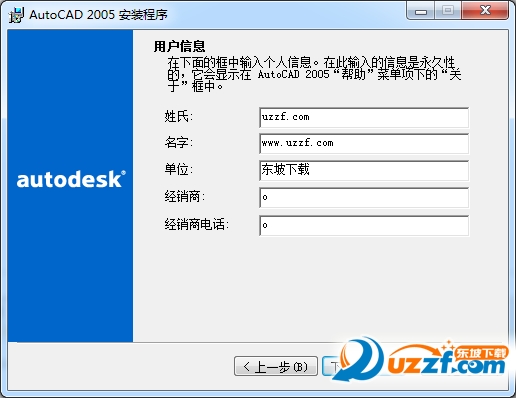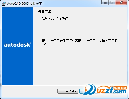 到这一步,确认无误后,点“下一步”即可开始安装AutoCAD2005 64位破解版