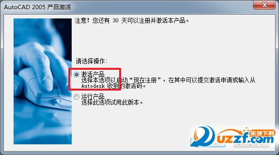 成功启动CAD2005,然后会提示你进行激活,默认勾选了“激活产品”,我们点“下一步”就好