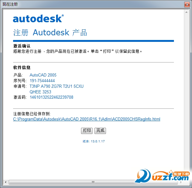 点“下一步”就可以成功完成CAD2005的注册激活,如图: