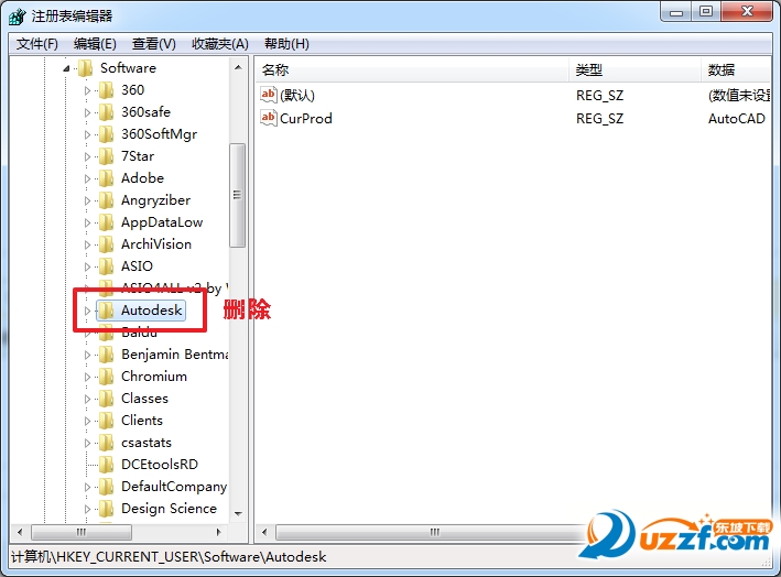 然后再进HKEY-LOCAL-MACHINE---进SOFTWARE---进AUTODESK---删AUTO CAD整个注册文件内容
