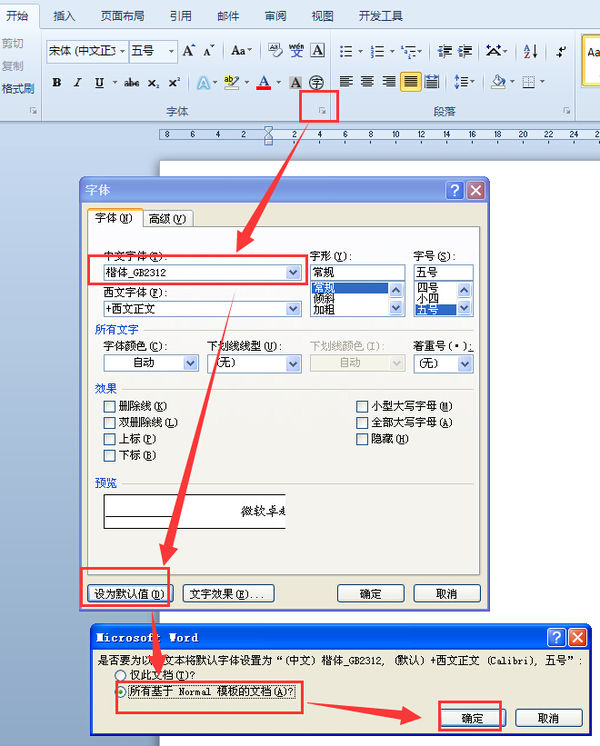 在Word里如何把楷体--GB2312设为默认字体 设置方法