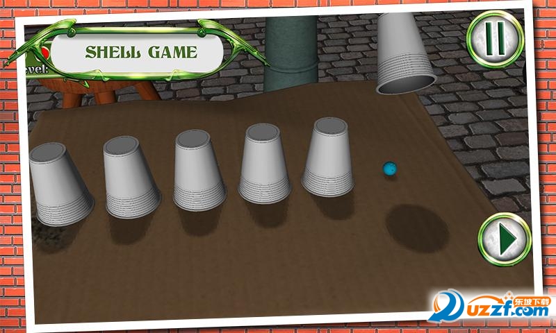 三个或更多一样的杯子口朝下放在桌子上,然后将一颗球放到其中一个杯子下,这样就看不到球了,然后快速改变杯子的位置。然后你要选出有球的那个杯子。