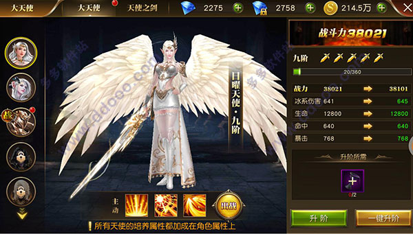大天使可以使用材料“神源”进行升阶,通过“天使副本”可以获得大量升阶材料。