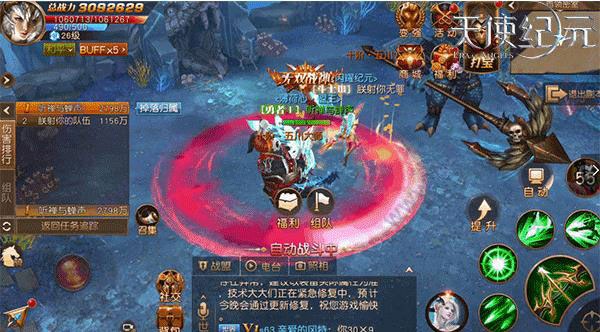 游戏中可以使用大天使变身功能,在一定时间内,借用大天使的力量,拥有超强AOE技能,玩家每秒固定恢复怒气,怒气值蓄满后点击技能栏中的大天使头像即可化身大天使,实力瞬间爆炸!