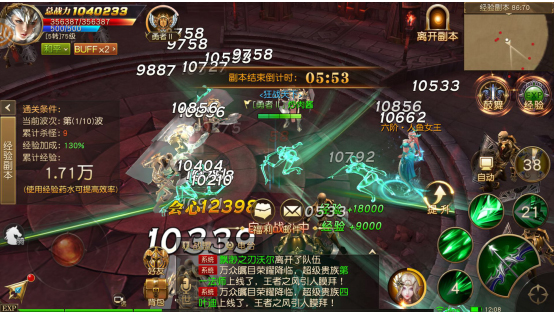 副本开始后将刷新诖误,限时6分钟,一共有10波怪物,期间击杀的怪物越多则可获得的经验越多。场景等级根据玩家进入时的等级决定,所以推荐在所有活动完成后再参加经验副本,可以进入今天最高等级的区间,获取的经验更多。
