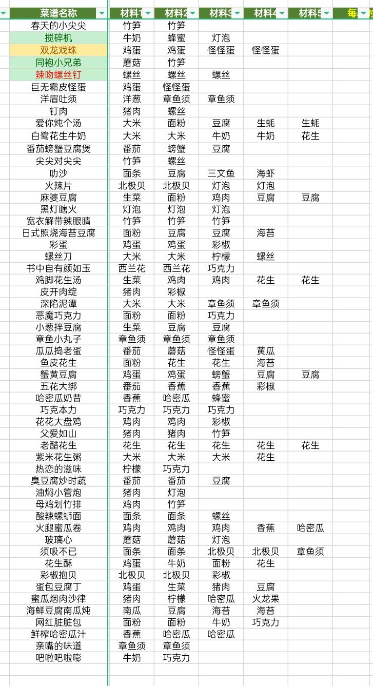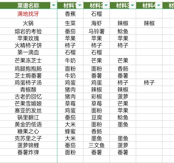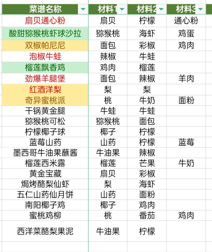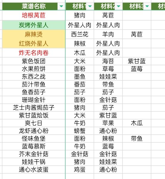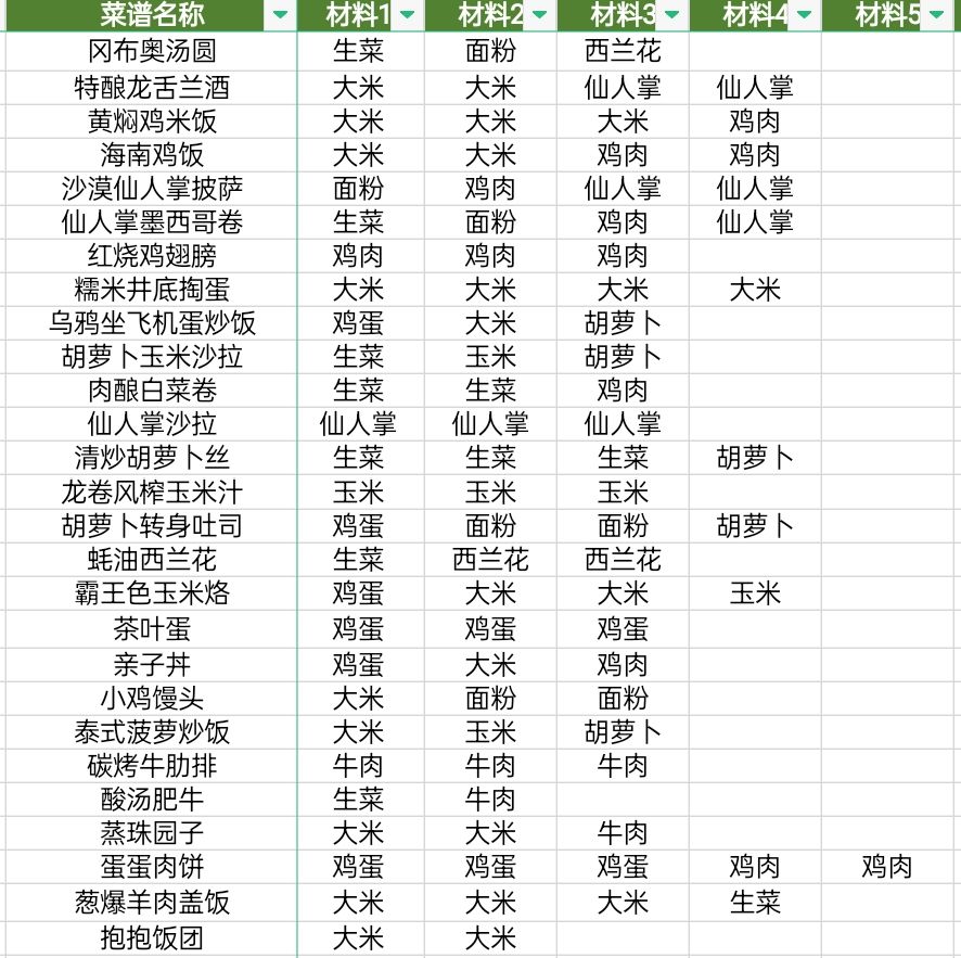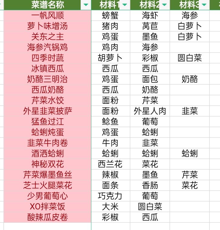 17、同一组合菜谱无法重复研究,不同组合同一料理能够提升料理属性,不过某些配方反而会扣属性。