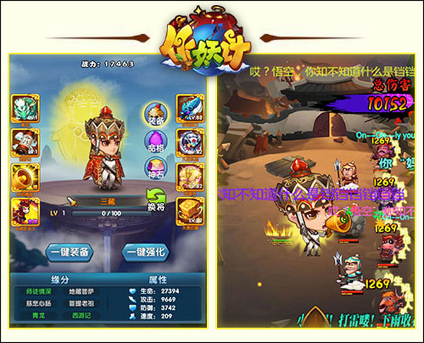(1) 三藏,小名江流儿,为如来座下二弟子金蝉长老投胎,西天取经敢死队老大。拥有的个人技能为“你妈贵姓”,此技能满屏弹幕,再现星爷版大话西游的经典台词,无厘头至极。